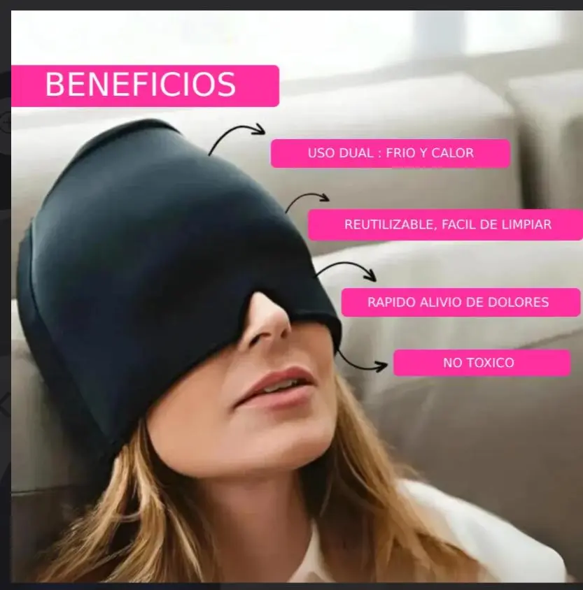 Muy buen producto para el dolor de cabeza, muy recomendable. Lo mejor de este producto es su diseño envolvente 360º, que proporciona una cobertura completa en la cabeza y los ojos